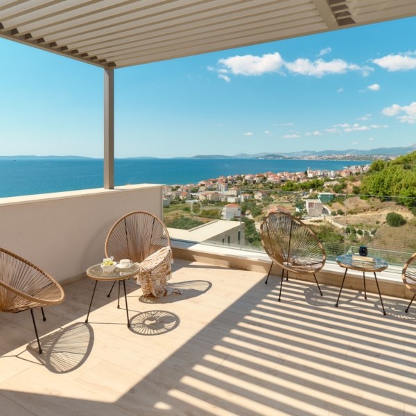 LUKSUSOWY PENTHOUSE Z TARASEM DACHOWYM I PANORAMICZNYM WIDOKIEM – TROGIR Panoramiczny widok na Trogir, Split i Adriatyk | Prywatny taras dachowy z możliwością instalacji jacuzzi i kuchni letniej | Blisko plaży i lotniska | Możliwość zakupu umeblowanego apartamentu ***** ROZKŁAD I STANDARD: Penthouse o powierzchni 140,91 m² z prywatnym tarasem…