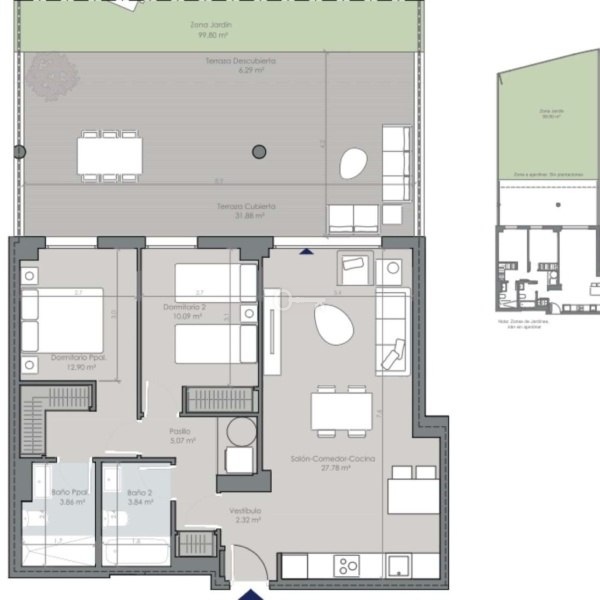 Apartament na parterze z prywatnym tarasem i częściowym widokiem na morze, dwie sypialnie i dwie łazienki, nowa kuchnia z pralnią, dwie łazienki, jedna z łazienką, centralna klimatyzacja i bezpośrednia winda do podziemnego parkingu. Wynajem turystyczny jest dozwolony