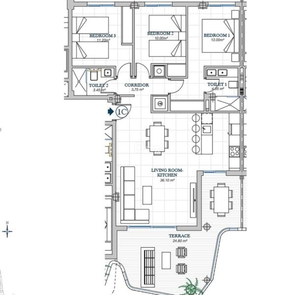 Ten zupełnie nowy apartament z 3 przestronnymi sypialniami i 2 łazienkami łączy nowoczesny design z wysokiej jakości wykończeniami. Salon i kuchnia na otwartym planie łączą się ze spektakularnym tarasem, zapewniając idealną przestrzeń do cieszenia się codziennym życiem lub przyjmowania gości. Duże okna sięgające od podłogi do sufitu wypełniają dom naturalnym…