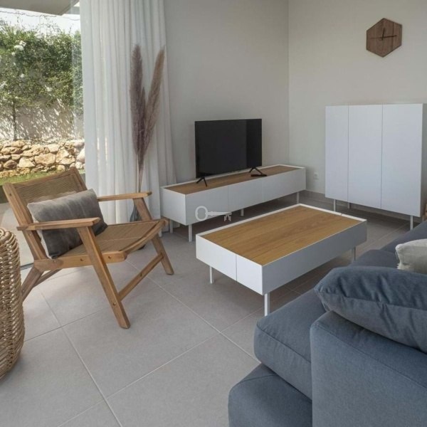 Apartament z ogrodem na parterze. Znajduje się przy Calle Sirius w Riviera (dolna część). Posiada dwie sypialnie z dwiema łazienkami, oddzielną kuchnię oddzieloną od salonu rustykalnym łukiem i barem. Salon / jadalnia z klimatyzacją i bezpośrednim dostępem do zadaszonego tarasu ze szklanymi zasłonami, z którego można uzyskać dostęp do ogrodu…