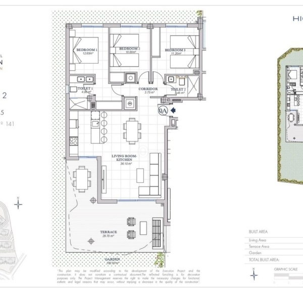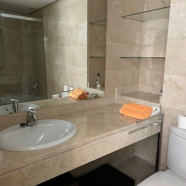 Przestronny narożny apartament na parterze z 3 sypialniami, 2 łazienkami, dużym salonem i jadalnią z wyjściem na zachodni taras o powierzchni 68 m2, w pełni wyposażoną kuchnią. Posiada zimną i ciepłą klimatyzację, metalowe żaluzje we wszystkich oknach i podziemny parking na 1 samochód