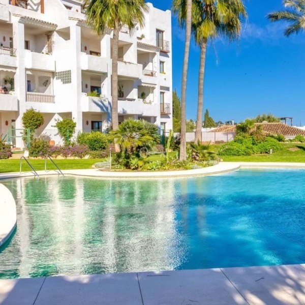 Apartament na parterze, Estepona, Costa del Sol. 1 sypialnia, 1 łazienka, powierzchnia zabudowy 96 m², taras 15 m². Otoczenie : plaża, miasto, dzielnica handlowa, plaża, port, wieś, blisko portu, blisko morza, blisko szkół, urbanizacja, kompleks przy plaży. Orientacja : Zachód. Stan : Doskonały. Basen : wspólny. Widoki : ogród, dziedziniec,…