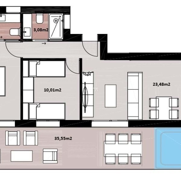 Apartament ten oferuje dużą część dzienną połączoną z otwartą kuchnią, w pełni wyposażoną we wszystkie nowe urządzenia marki Bosch. Nowoczesny apartament oferuje dwie sypialnie (1 z łazienką) i dwie łazienki, główna sypialnia z dostępem do dużego tarasu z przepięknym widokiem na morze i góry, od strony południowej do południowo-zachodniej. Ogólnie…