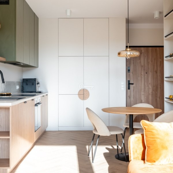 APARTMENT IN ORŁOWO – NOWE KOLIBKI Gdynia Orłowo | Modernist villa | High-standard building | Fitness & SPA | Verde Alpi natural marble | Natural, bleached oak flooring | Exclusive Casamance fabric wallpaper ***** ROOM LAYOUT AND STANDARDS: The apartment consists of:* shared kitchen and living room* guest room* bedroom*…