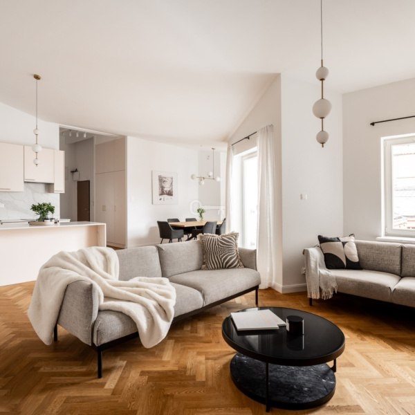 SPACIOUS APARTMENT IN A RESTORED TENEMENT HOUSE IN POWIŚLE Representative tenement house | Prestigious location on Górnośląska Street | 3 bedrooms I Study I Top floor I Elevator ***** ROOM LAYOUT: * hall with wardrobe,* living room with dining area,* open kitchen,* three bedrooms (2 walk-in closets),* study with access…