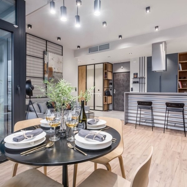 APARTMENT IN THE UNIQUE ELEKTROWNIA POWIŚLE COMPLEX Fully furnished | Heart of Powiśle | Industrial Style | High Standard ****** LAYOUT: The 30 m² apartment includes: *An open-plan kitchen equipped with all necessary appliances, a dining area with a kitchen island and two chairs,*A spacious living room with a comfortable…