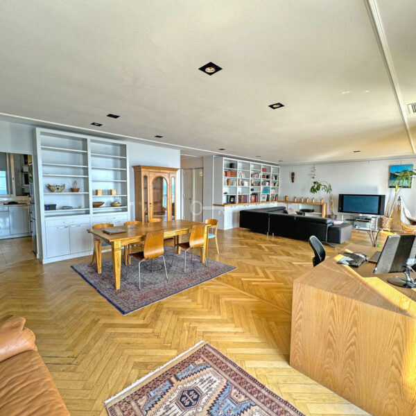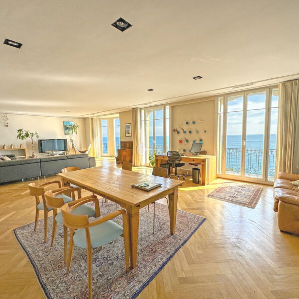 The impressive 170 m² apartment consists of an entrance and a spacious 70 m² living room, bathed in light, offering panoramic sea views thanks to bay windows and a balcony that is sure to enchant you. An independent, equipped kitchen and a separate toilet complete this living space, which is both spacious and functional.