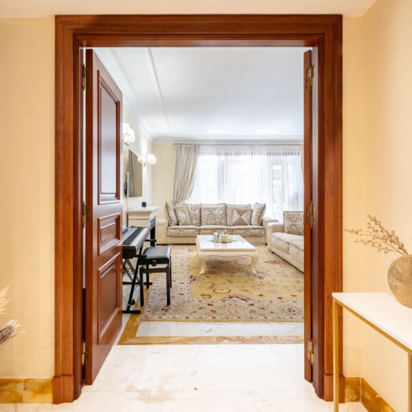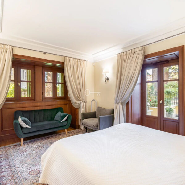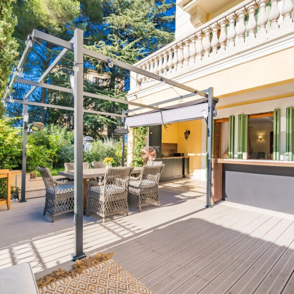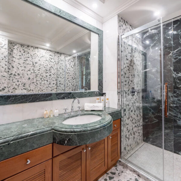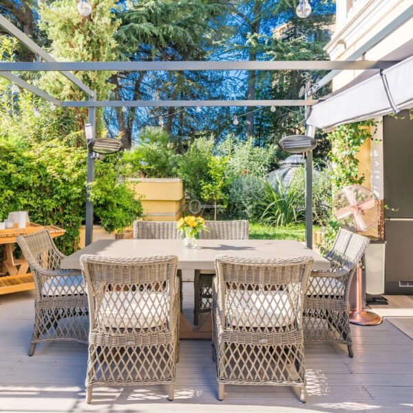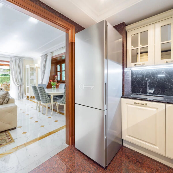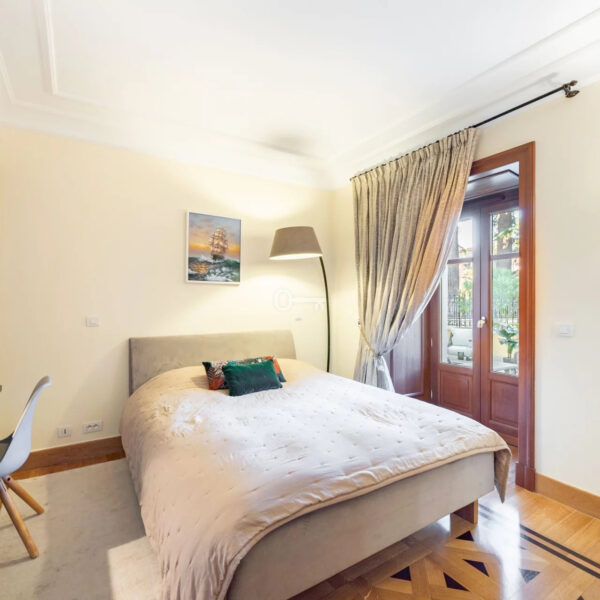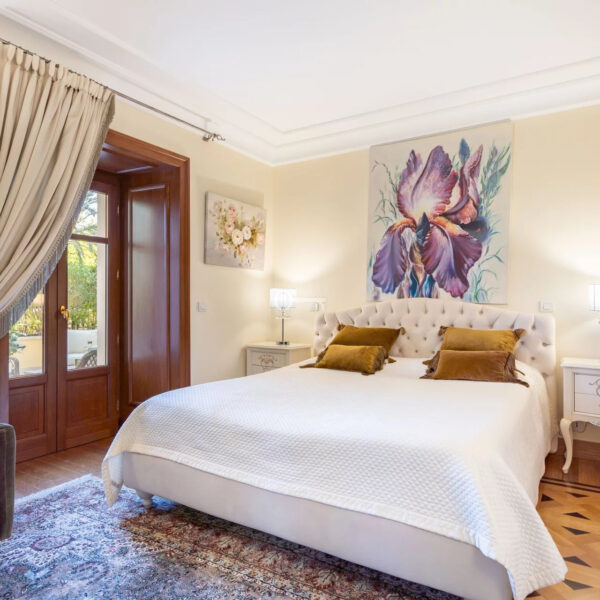 At the Belle Epoque luxury residence, you’ll instantly fall in love with this spacious apartment surrounded by a private garden and terraces, harmoniously combining old-world charm with modern comfort. The residence consists of a spacious entrance hall, living room, semi-open kitchen, two bedrooms with bathrooms, numerous closets and storage space, laundry room and guest toilet.