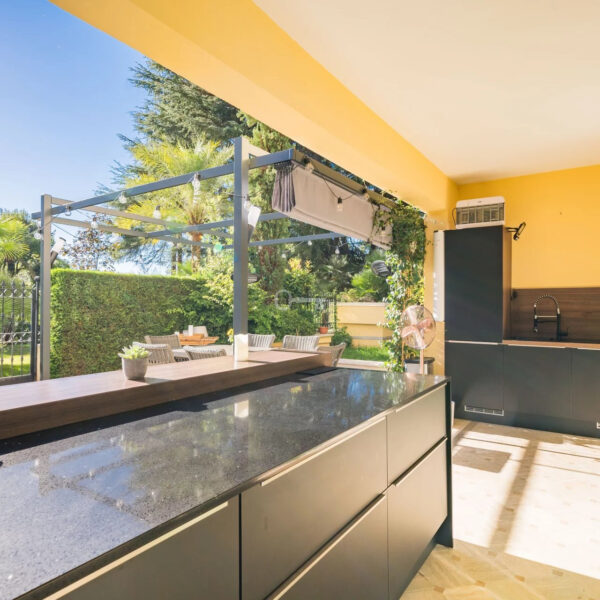 The living room opens onto a beautiful south-facing terrace, partially covered and equipped with a summer kitchen, providing absolute tranquility with a view and private entrance to the co-ownership park. Both bedrooms have direct access to the north terrace.