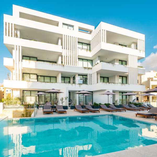 Located on Kings Avenue in the heart of Kato Paphos, the project is a remarkable new complex consisting of two five-story buildings housing luxury residential apartments. The architecture is a modern combination of concrete, wood, ceramic, bronze aluminum and a beautiful green facade, carefully crafted to both complement and contrast with its surroundings. The sumptuous, contemporary apartments were designed without compromise and built with the utmost attention to detail. Most feature outdoor space, some on a spectacular scale, and many offer breathtaking views of the lighthouse and the Mediterranean Sea.