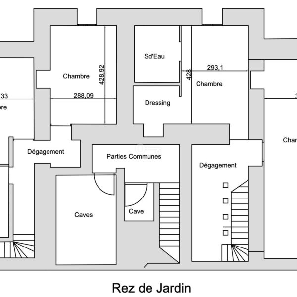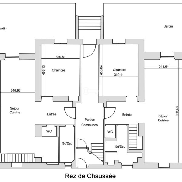 – 2 T4 apartments on the first floor (bedrooms in souplex) of 124.46 and 101.32 m², renovated, with private gardens.
