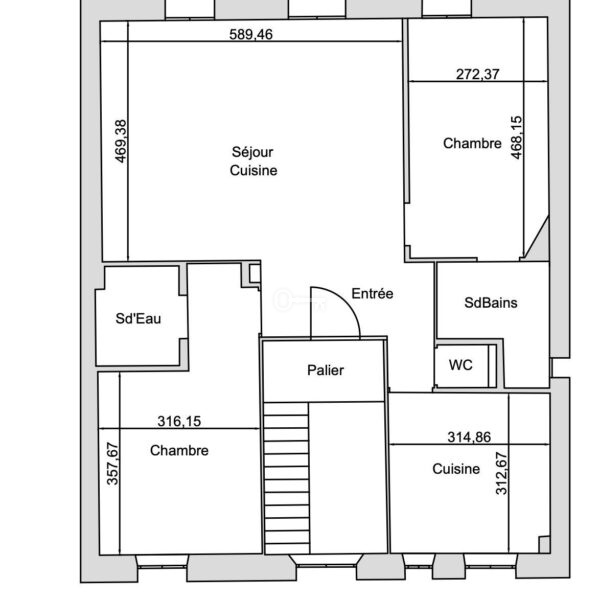 – On the 2nd floor, 1 T3 apartment of 78,43 m² with large living room, double exposure and balcony to the south.