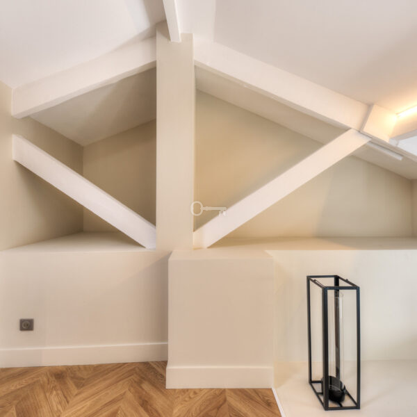 On Place Magenta, this exceptional two-level DUPLEX apartment is located on the top floor of the Bourgeois Palace with elevator. This 3/4-bedroom penthouse offers approximately 100 m² (90 m² according to the Carrez Law) with a ceiling height of 4 meters.