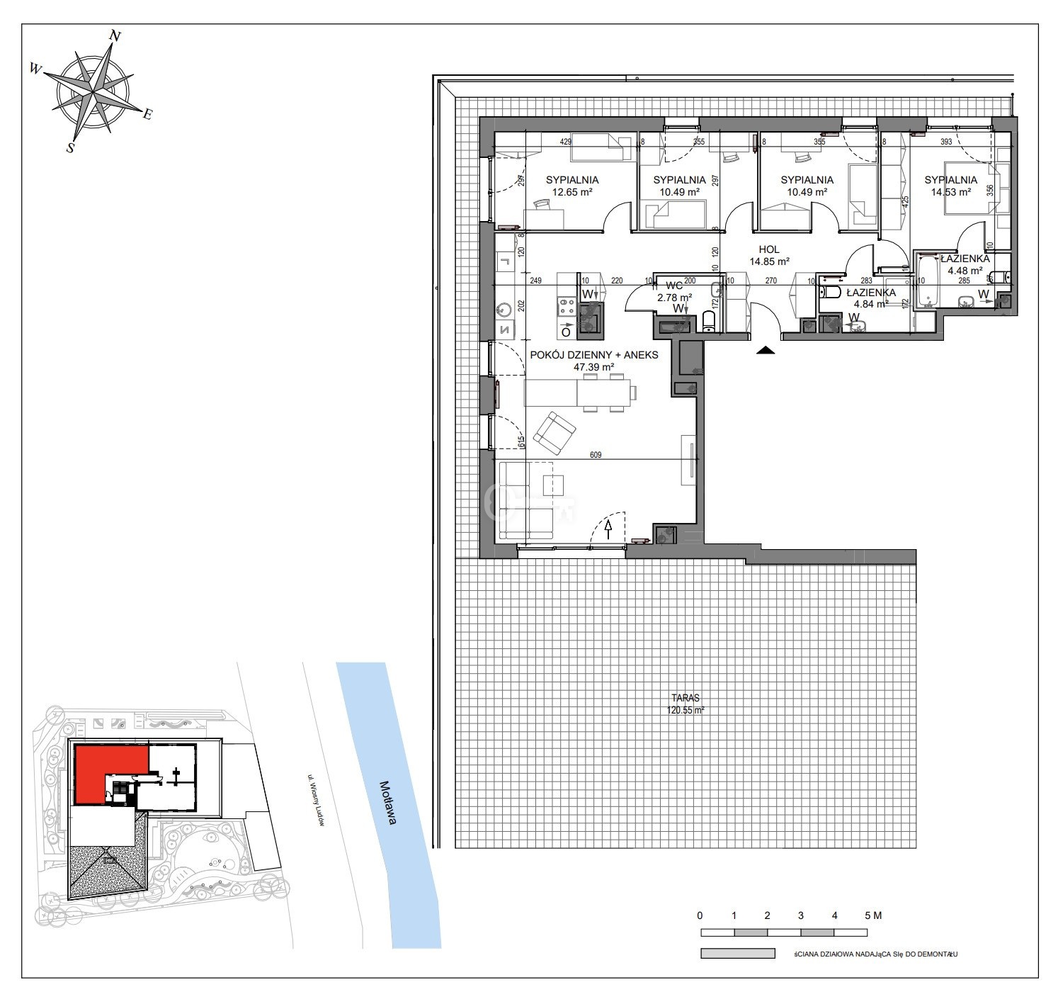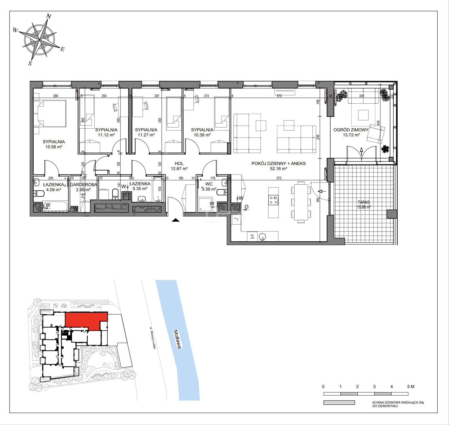Number of rooms: The offer includes layouts from 1 to 5 rooms, including units with the possibility of easily separating an additional bedroom.