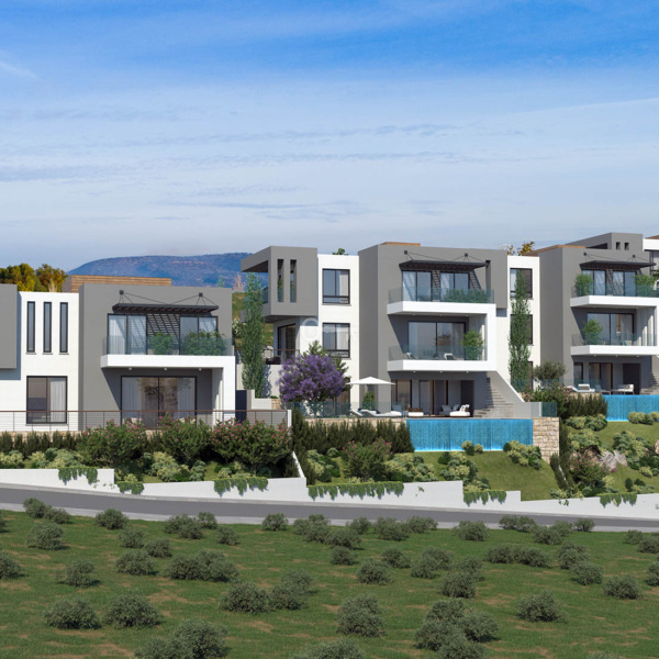 It is in Lofos that you will find Lofos Heights, a complex of 2 and 3-story villas with with 3 bedrooms, 3 bathrooms and a spectacular pool, providing picturesque views. The complex is just 10 minutes from the center of Paphos, the international school, Tsada golf course and the beach.