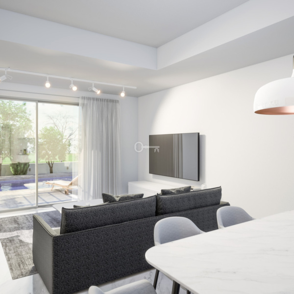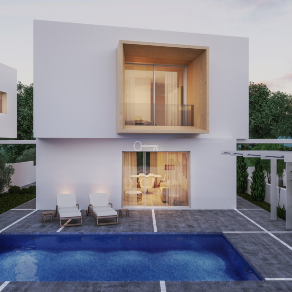 Nerida Residences is an example of elegant seaside living. This brand new development of seven modern villas is located in Chlorace, in a green area just 200 meters from the sea, where the national master plan for the breakwater and sandy beach infrastructure is currently being finalized. Similar but not identical in architectural lines and style to create an aesthetic impression, each two-story villa is based on a spacious layout of 3/4 bedrooms and an open living area. Step out onto the patio to relax and cool off in the private pool with surrounding sunbathing area. The seven villas are on two levels, providing sea views from the upstairs bedrooms.