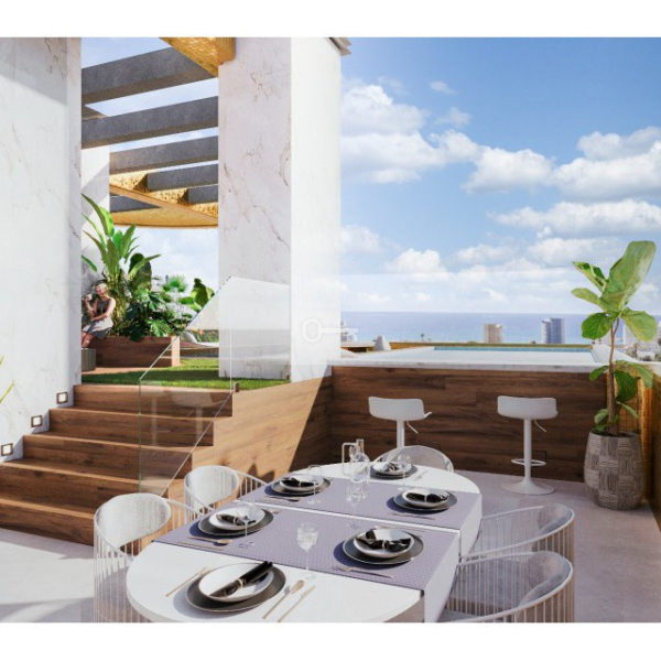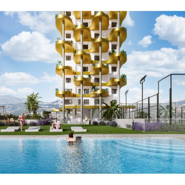 Just off the beach in the town of Calpe, a new futuristic project is under construction aimed at families as well as investors. Each apartment in this development has a huge 360-degree terrace.