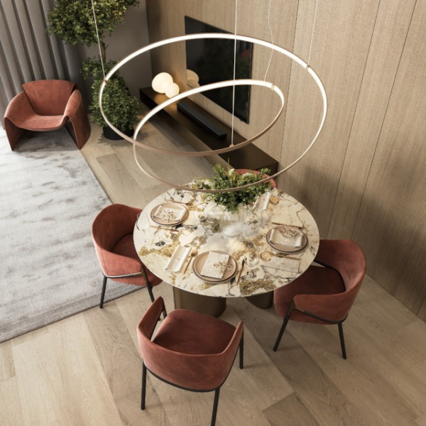There is a swimming pool, gym, children’s play area and many other conveniences available to residents. The building was built with eco-friendly raw materials and natural elements.