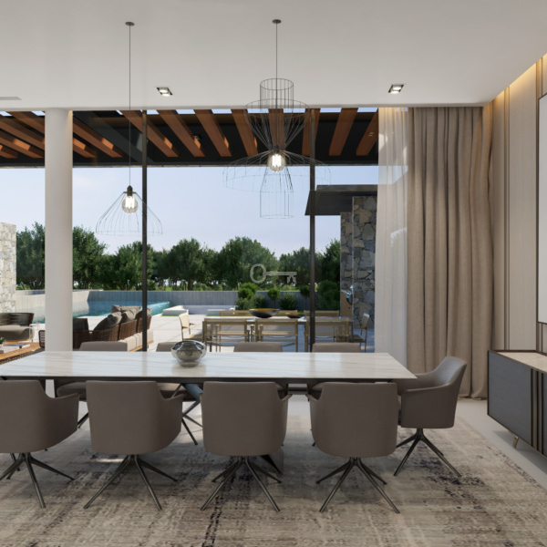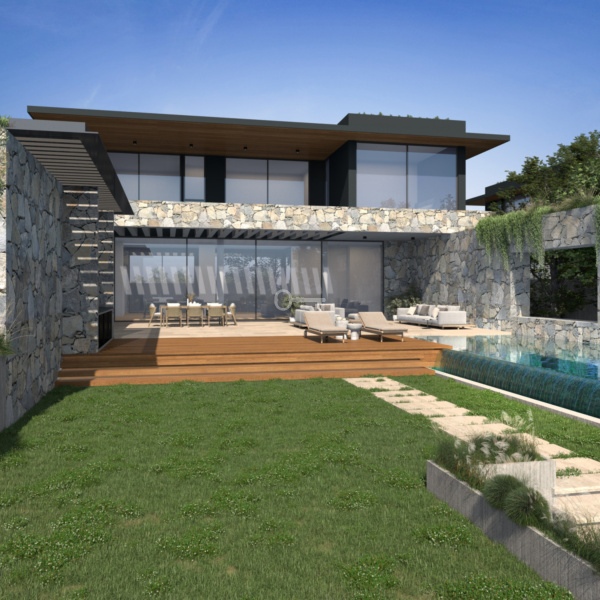 The design of the five-bedroom villa focuses on the principle of less is more, offering a wealth of space and authentic complexity through carefully selected materials.