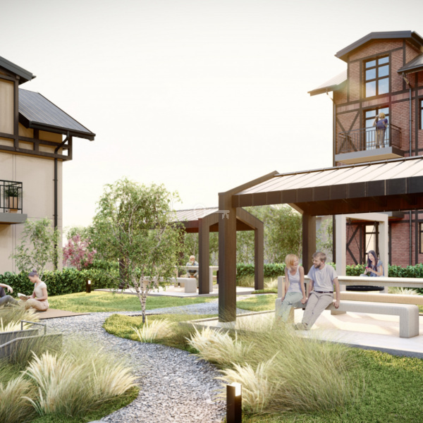 There are four three-story buildings under construction on the estate, sitting on a garage hall with two entrances from two different streets.