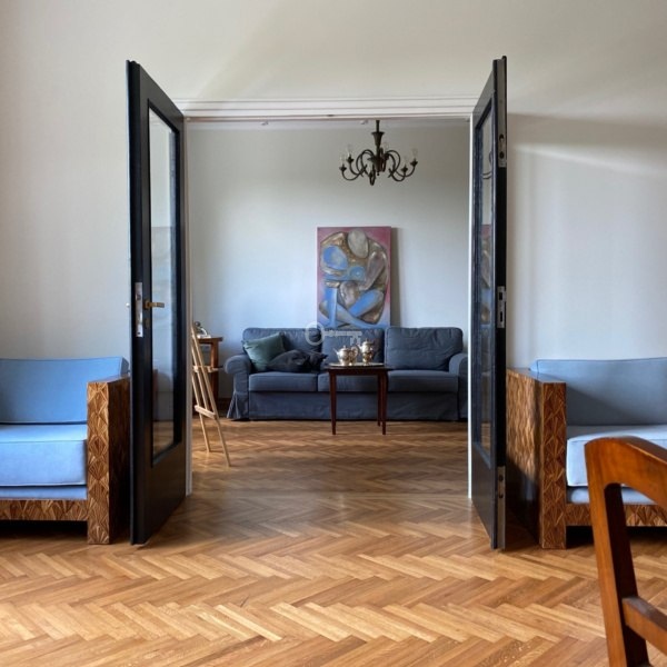 ART DECO-INSPIRED APARTMENT | 3 ROOMS Spacious interiors / Historic tenement house / Unique view / Right next to the Bristol Hotel / Parking available in the inner patio ***** LAYOUT: 2 rooms – living room with dining area forming a coherent whole, although physically separated by a door –…