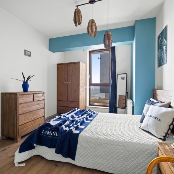 The apartment has been designed with maximum comfort and elegance in mind. Extensive glazing ensures natural daylight throughout the day and stunning views in all directions—from the port and city skyline to the endless surface of the Gdańsk Bay. The interiors are finished with high-end materials: custom kitchen cabinetry, top-quality appliances from renowned brands, and modern bathroom fittings. The minimalist design blends seamlessly with functionality—each square meter offers a sense of luxury and freedom.