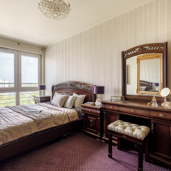 The apartment is located in Mokotow, close to the Stegny sports center. In the area there are stores, cafes, kindergartens, nurseries, as well as international schools. Good transport connection with the center of Warsaw and proximity to the Sluzewiecka Valley Park with bicycle and jogging trails.