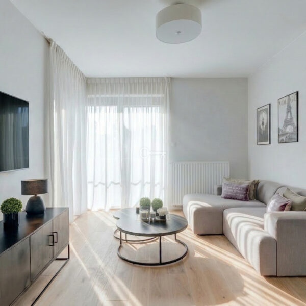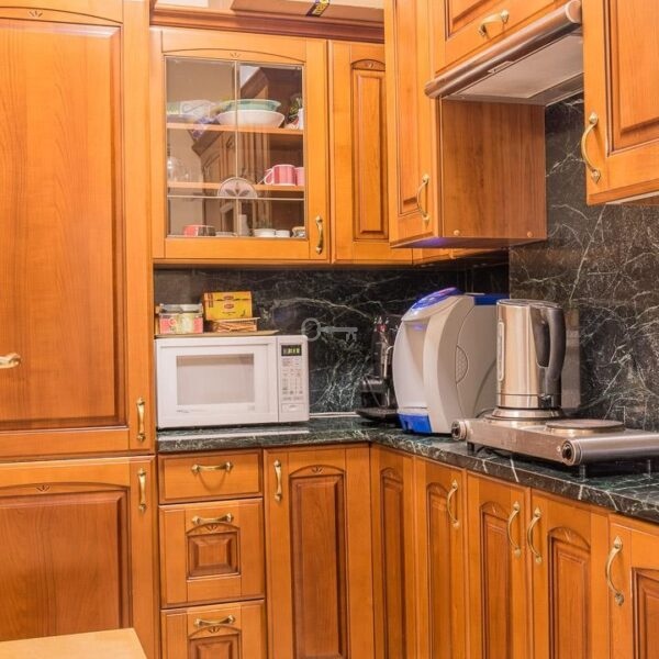 Thanks to the large windows, the apartent is bright and well lit, with wooden parquet on the floor.