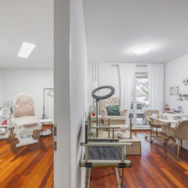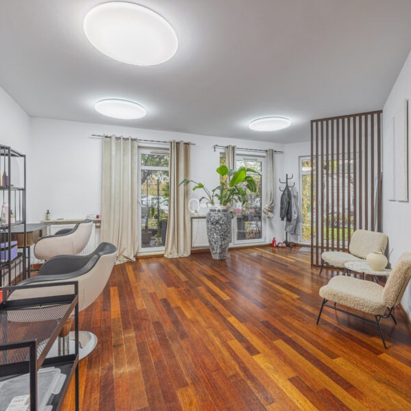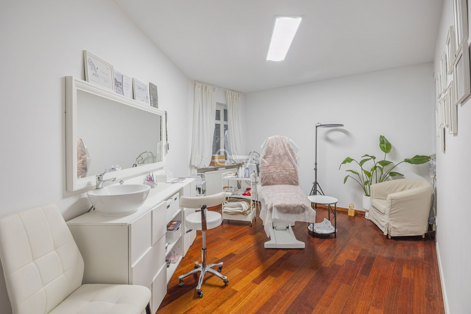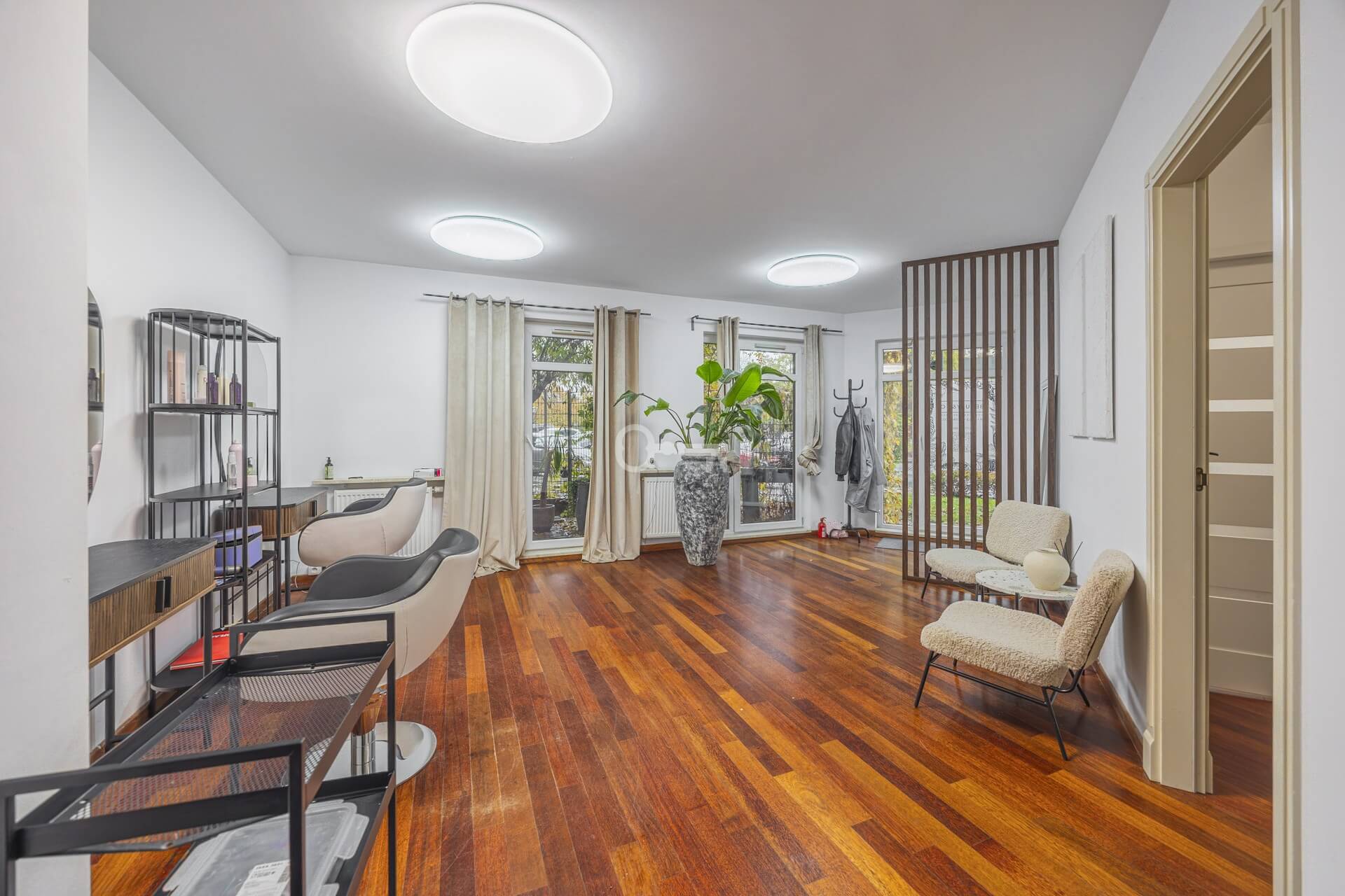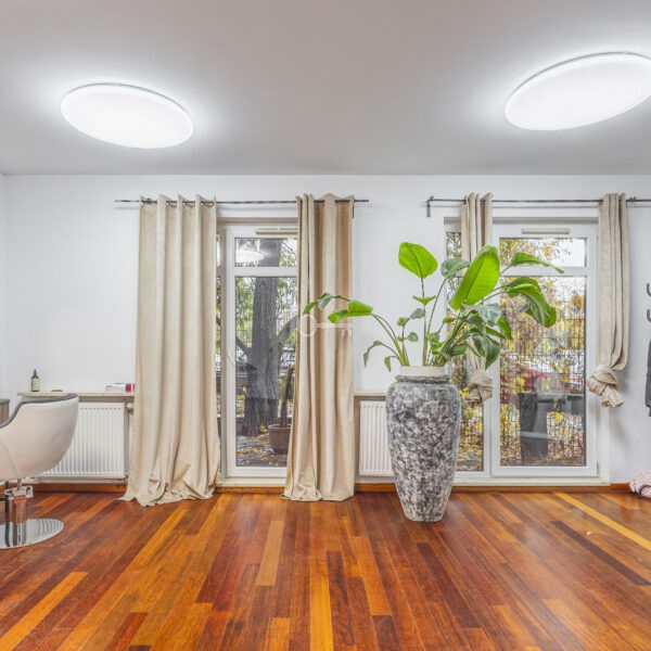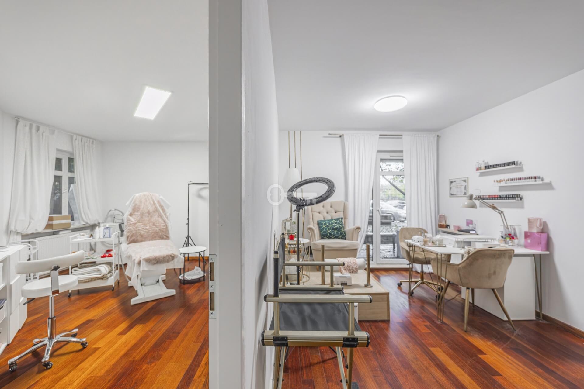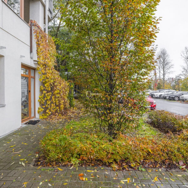The premises are located on the ground floor of a residential and commercial building in Miasteczko Wilanów, with very good access from Al. Wilanowska, near the Royal Axis. In the interest of security, the building has a 24-hour reception and staff. The building is well-maintained, there is a manicured garden at the back available for residents.