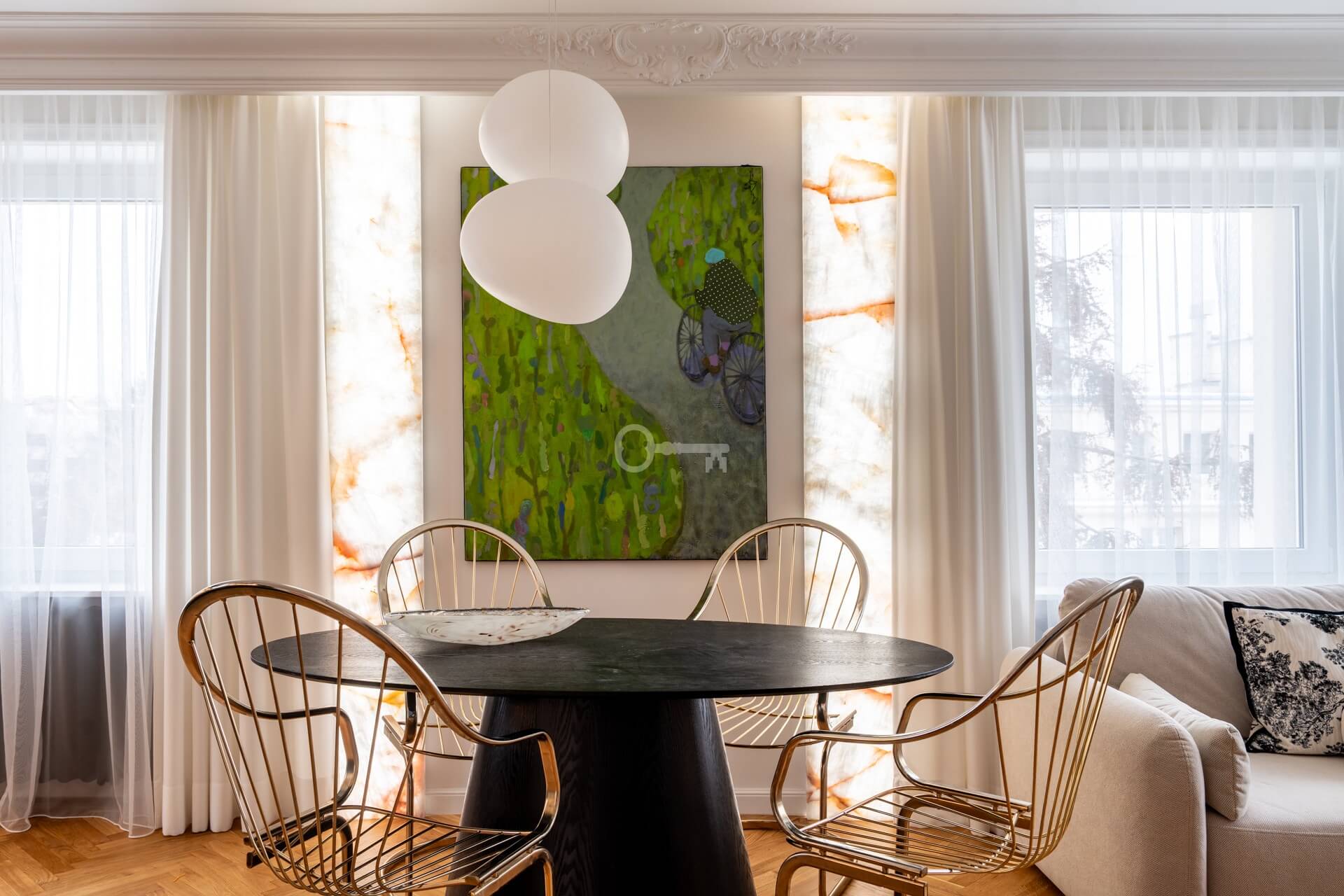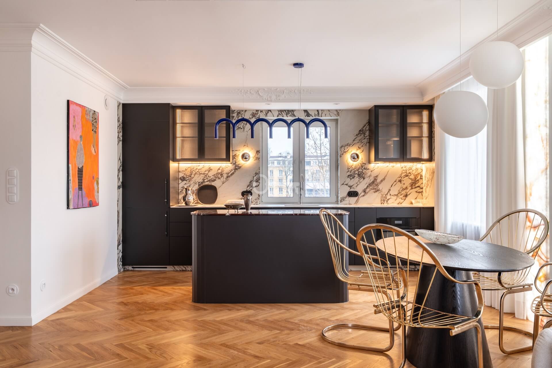 This apartment is a treat for lovers of open space, beautifully lit by daylight, rich in stucco and sophisticated design. The well-thought-out interiors impress with their attention to every detail. Designed and renovated under the supervision of an architect.