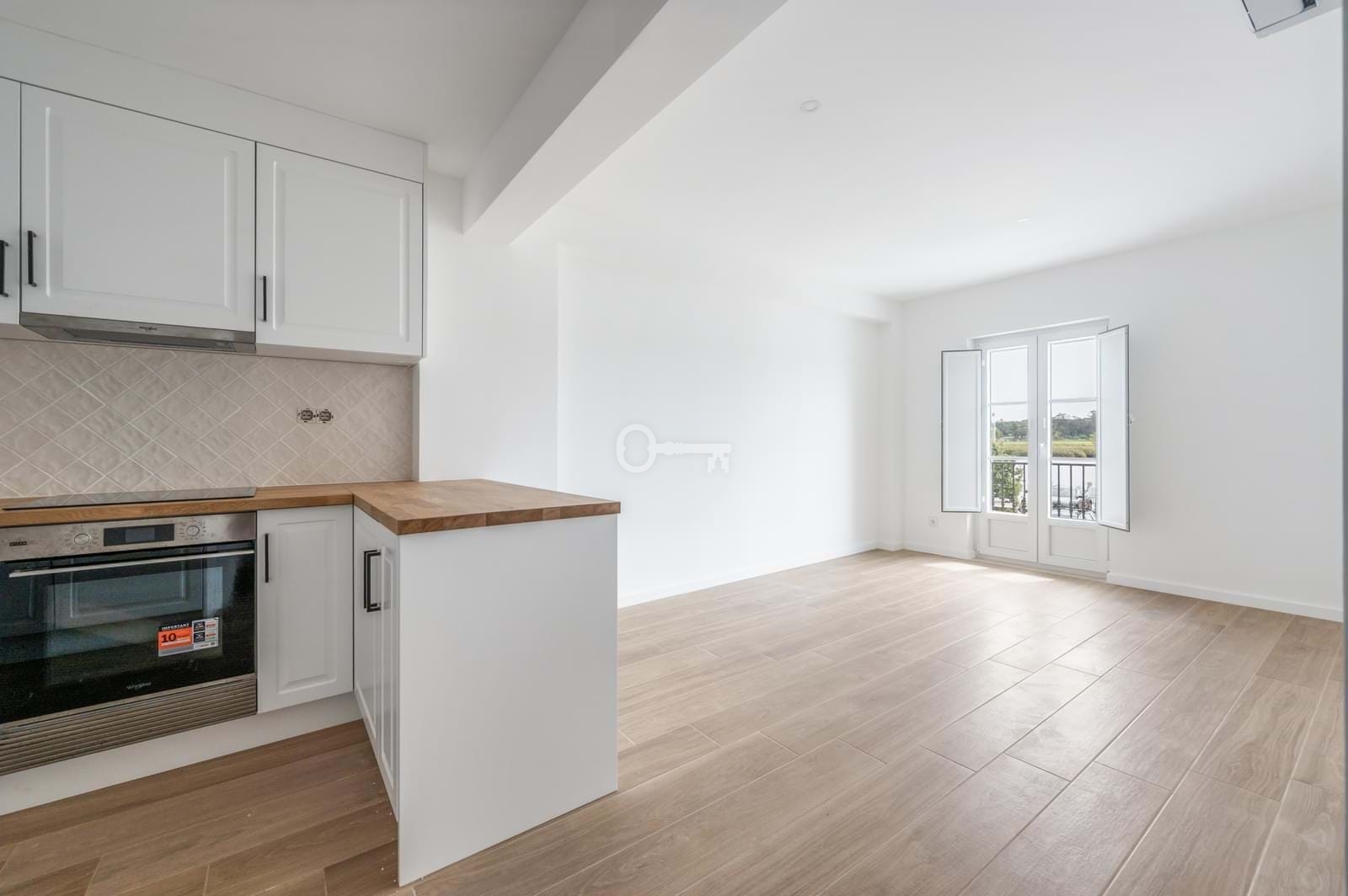 With a gross private area of 84 m², the property features a living room with a south-facing balcony offering views of the Sado River and the rice fields, a kitchen equipped with brand-new appliances, two bedrooms with built-in wardrobes, and a bathroom with a bathtub.