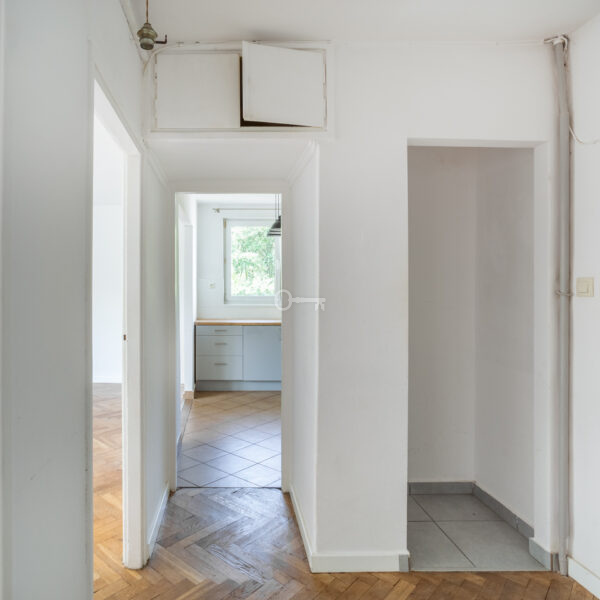 Importantly, should there be a need, it is technically possible to convert the kitchen, which is basically a completely separate room, into a third room and replace it with a kitchenette in the living room.