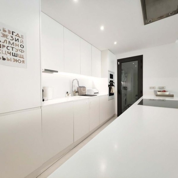 The spacious, light-filled living area features floor-to-ceiling windows that open onto a generous west-facing terraceperfect for enjoying the sunset. The sleek, open-plan kitchen is ideal for both casual dining and entertaining.