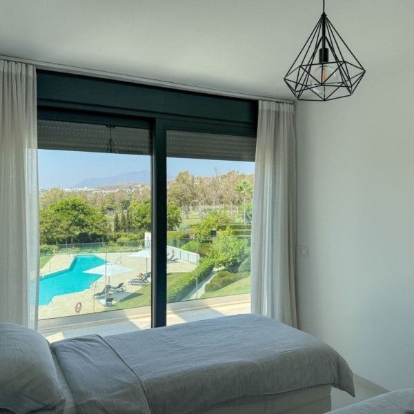 Built in 2018, this stylish 2-bedroom, 2-bathroom apartment offers a modern, light-filled living experience. The standout feature is the enormous, east, south and west-facing wraparound terrace, where you can soak up the sun and enjoy breathtaking views over the pool and gardens, the surrounding mountains, the iconic La Concha peak, glimpses of the Mediterranean Sea, and the nearby golf course.