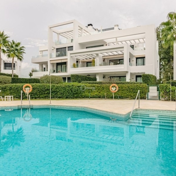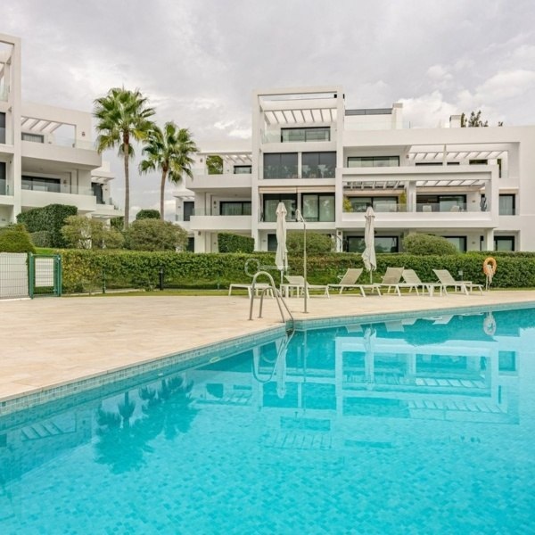 This stunning 2 bedroom apartment is located in the exclusive Las Terrazas de Atalaya development in Estepona, Malaga. Situated in a gated community, this modern and contemporary property offers luxury living with beautiful golf views.