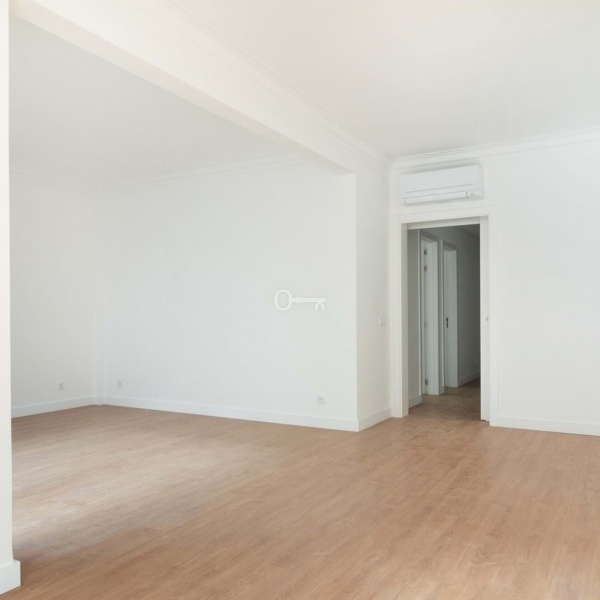 3-bedroom apartment, renovated, 133 sqm of gross floor area, in a rehabilitated building with balcony, located in the Arco do Cego, Lisbon. The apartment comprises a living room with access to a balcony, a suite and two bedrooms with wardrobes, and a fully equipped kitchen. Double glazed windows and pre-installation of air conditioning. Apartment with good sun exposure and careful renovation that preserved the original design. Second floor of a rehabilitated concrete building that has been fully painted, with two elevators.Located in one of the largest and most consolidated residential areas in Lisbon, crossing the central axis and benefiting from a wide range of gardens, cultural facilities, shops, and services, as well as a wide public transport network. 8-minute walking distance from Instituto Superior Técnico, Arco do Cego Garden, 31 de Janeiro Market, and 3 minutes from the Arroios underground station. 7-minute driving distance from Dona Estefânia Hospital and 11 minutes from Humberto Delgado Lisbon Airport.