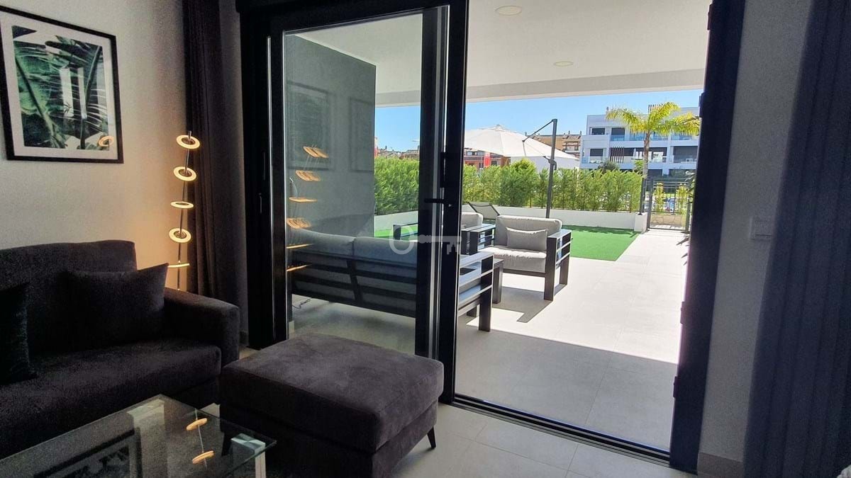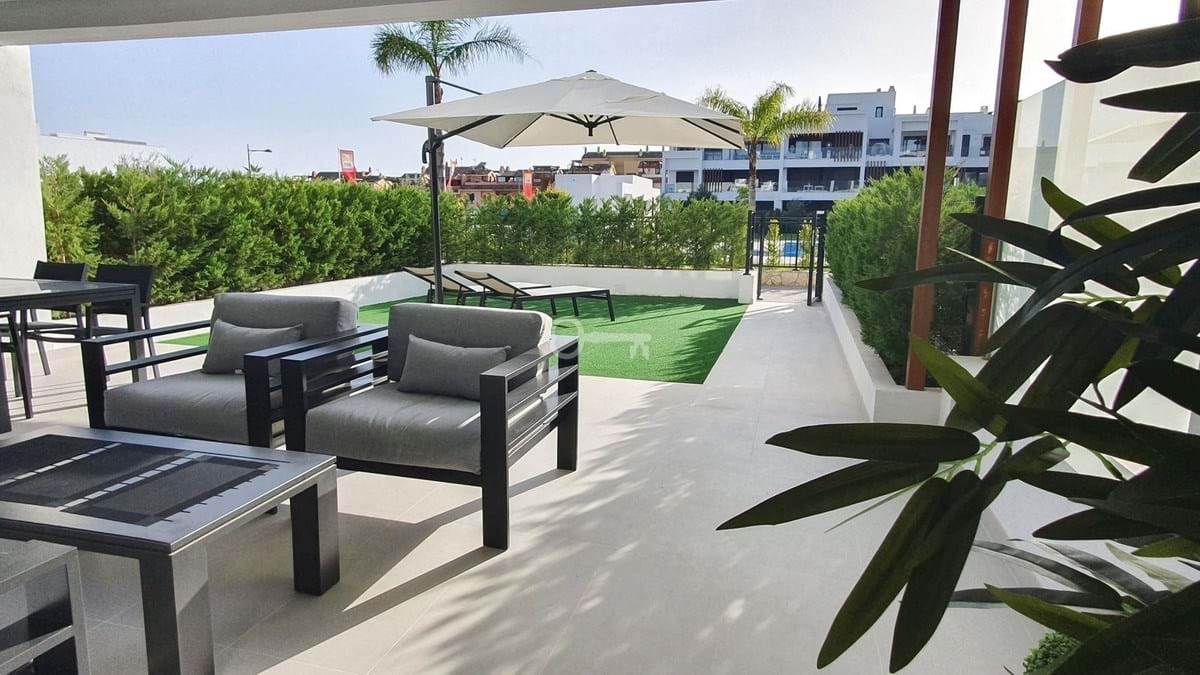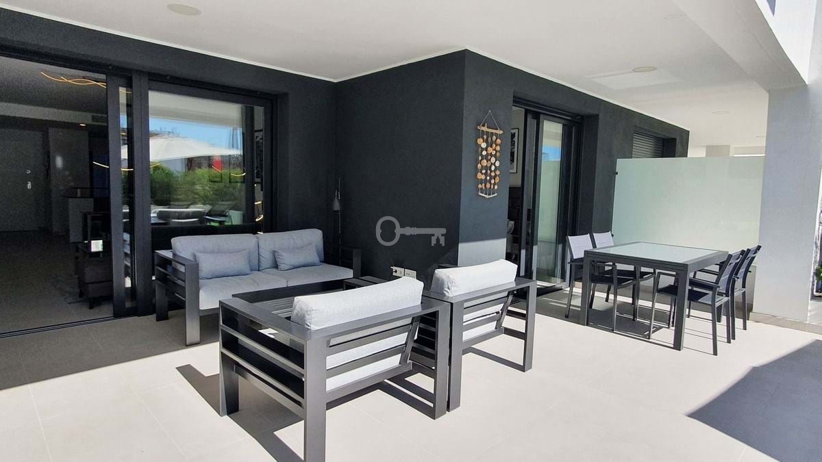 This stunning ground-floor apartment in Los Miradores del Sol Phase I perfectly combines contemporary luxury with Mediterranean indoor-outdoor living on Esteponas exclusive New Golden Mile. Offering 92 m² of elegant interior space and an impressive 84 m² of private terraces and gardens, its ideally located just a short walk from the beach, shops, and restaurants.