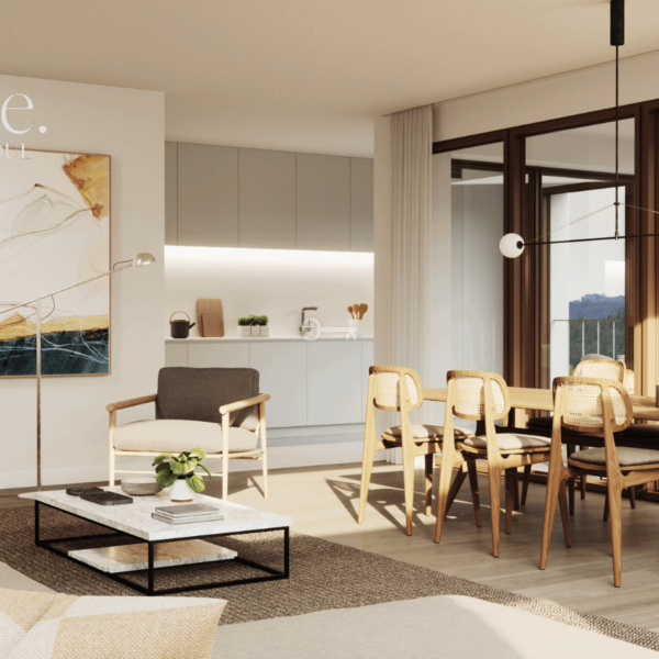 Inserted between green areas and all the services you need. With space for your home office, the large windows invite the light to come in, to live in full. The building is light and delicate, with modern lines and tones linked to the landscape. The flats have the maximum optimization of space, reducing the circulation areas, but maintaining the differentiation between day and night zones and creating plenty of storage.