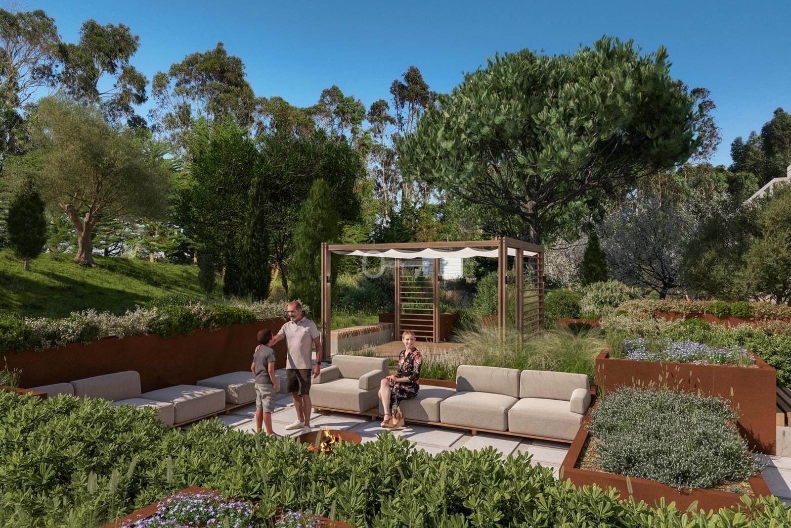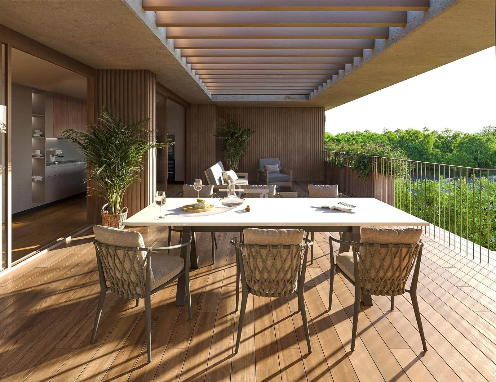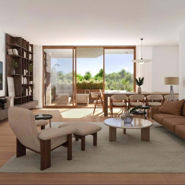 3-bedroom apartment with 127 m² of interior area plus 76 m² of exterior space, distributed between a balcony and a private garden, facing west, located in the One Thousand Native development in Belas Clube de Campo.
