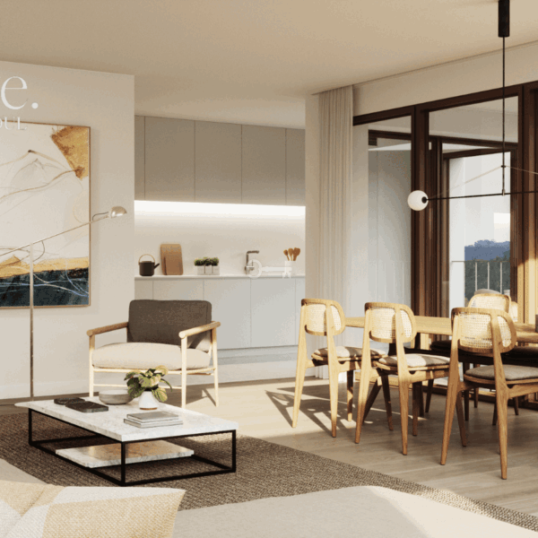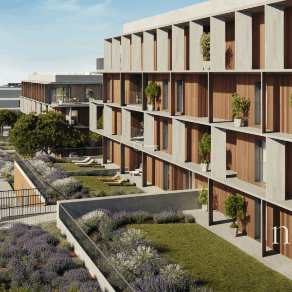 Situated among green areas, the property benefits from a privileged location, with all the necessary services for your daily life. With an ideal space for a home office, the apartment is bathed in natural light, thanks to its large windows, inviting pleasant and productive living experiences. The building, light and delicate, features modern lines and tones harmonious with the surrounding landscape. The optimization of space is a priority, with an efficient distribution that reduces circulation areas, but maintains a clear differentiation between day and night zones, creating ample storage spaces.