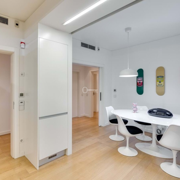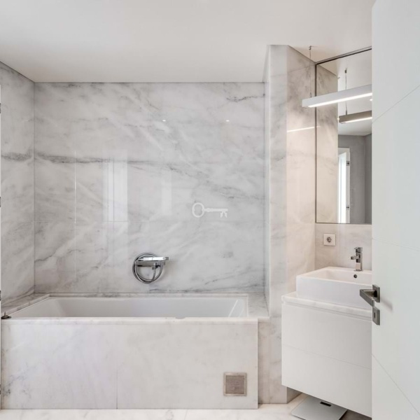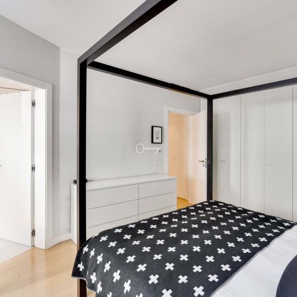 3-bedroom duplex apartment, 210 sqm (gross floor area), modern, located in Restelo, Lisbon. Created from the reconstruction of an iconic building, this apartment is characterised by contemporary lines, a youthful style, quality, comfort, and historic preservation. The upper floor consists of the social area, including several bay windows with views of Belém Towerthe most iconic view in Lisbonand a suite including a bathroom with double washbasin, hydromassage bath, shower tray, and TV mirror. On the lower floor is a modern, fully equipped kitchen with adjacent dining area and laundry area. A suite with a bathroom including a double washbasin and bath, and the third bedroom plus a bathroom with bath. All the bathrooms are tiled with Carrara marble. The apartment has oak wood flooring. The apartment has a home automation system, underfloor heating, radiant walls, and ambient music. It has two garage parking spaces. Opportunity for investment, for rental market for instance, due Torre de Belém view, proximity to monuments and touristic location.Located within a 10-minute driving distance from Park International School, and walking distance from the new British School and Colégio Bom Sucesso. Within a 5-minute driving distance from CIF Tennis Club and 20 minutes from the centre of Lisbon and the airport.