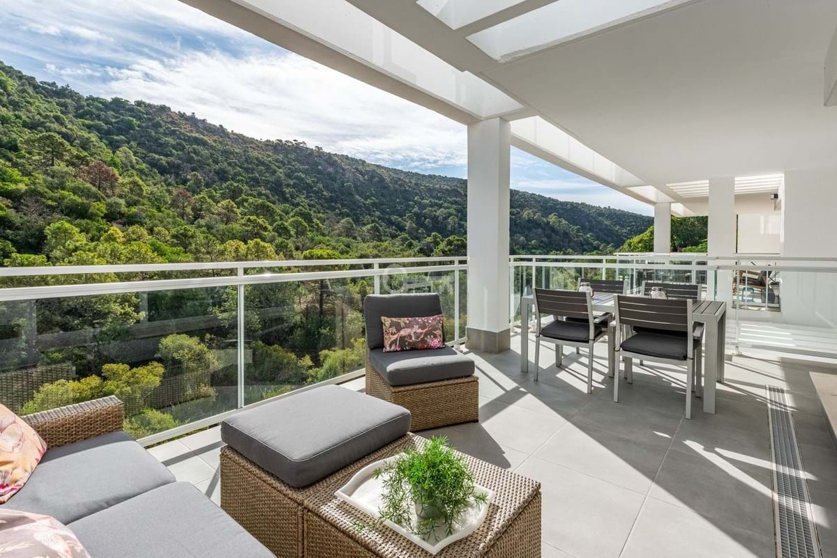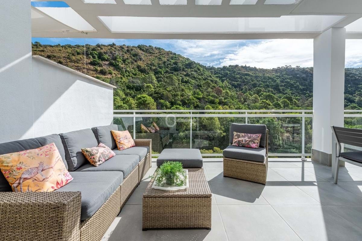 A private terrace extends the living space outdoors, providing an ideal spot for al fresco dining, relaxing, or simply enjoying the pleasant views of the natural surroundings that make Benahavís so special.