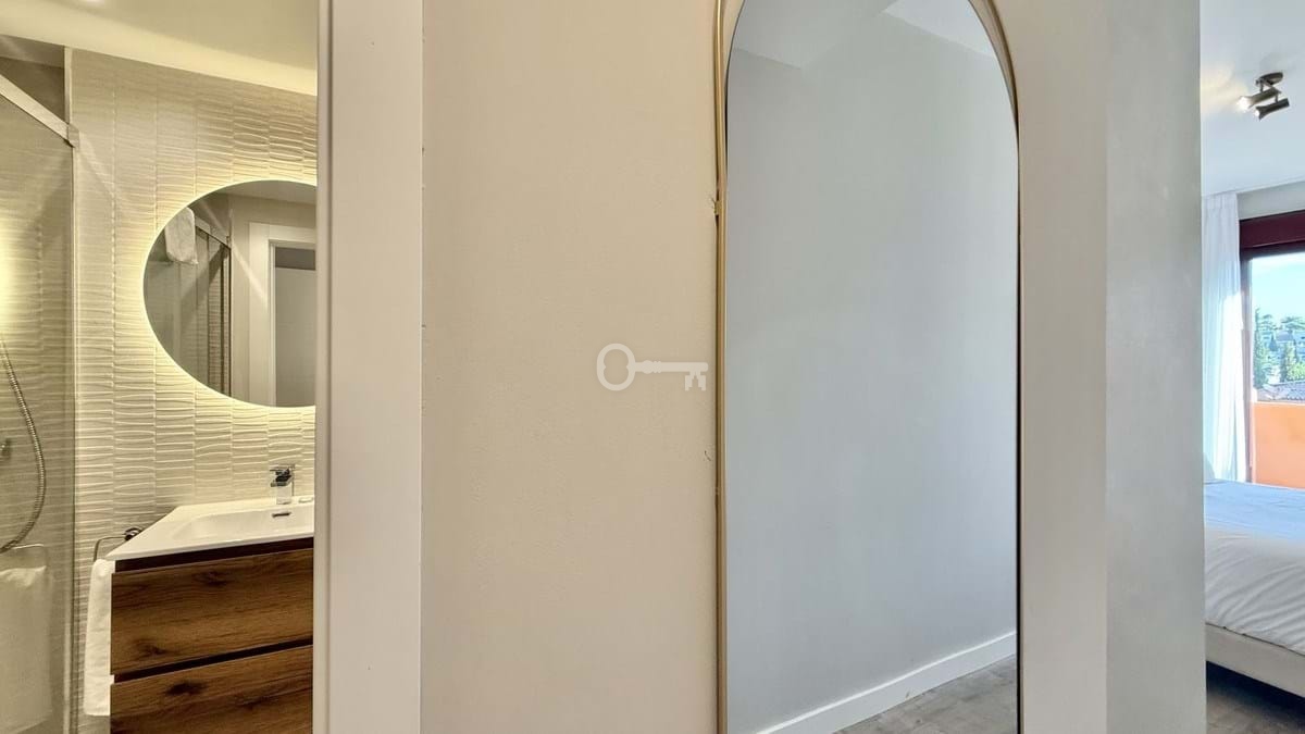 This fantastic 2 bed 2 bath apartment is fully furnished and tastefully decorated. A south-east facing private terrace overlooks the El Paraíso golf course, the La Concha mountain, and a communal swimming pool.