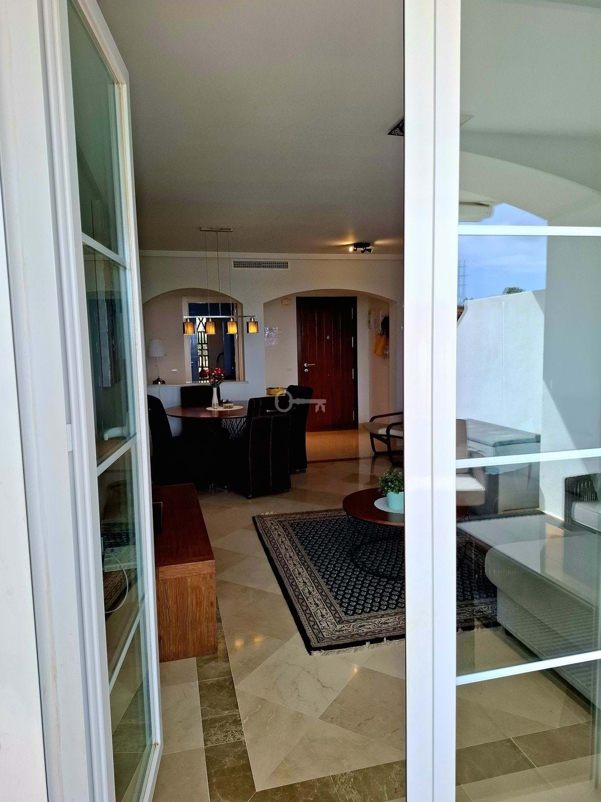 The apartment faces south, ensuring plenty of natural light and a warm, welcoming atmosphere throughout the day. It features two bedrooms and two bathrooms, including a master bedroom with en-suite bathroom and direct access to the spacious terrace. From here, you can enjoy beautiful views and even see a glimpse of the sea the perfect spot to relax and soak up the Mediterranean sunshine.