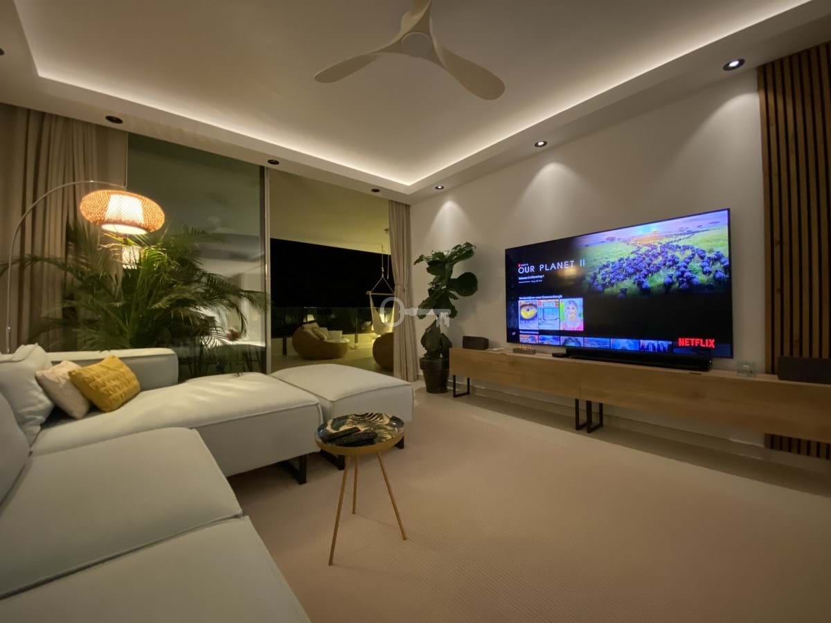 Open plan living room with Italian design kitchen including Siemens appliances and wine fridge. Floor to ceiling glass sliding doors open to the covered outdoor living area. Aircon hot and cold plus heat pump operated underfloor heating throughout the entire apartment controlled separately per room. The primary bedroom also connects to the covered balcony and has a bathroom ensuite. The two guest bedrooms share a shower room and there is a separate guest toilet. Double private parking in the garage and a big storage room included. Don’t miss this rare opportunity to acquire a 3-bedroom apartment in Stupa Hills.