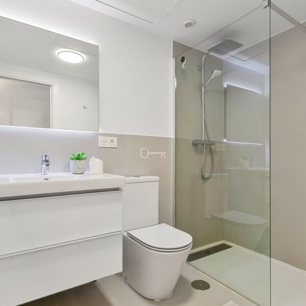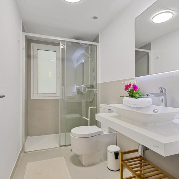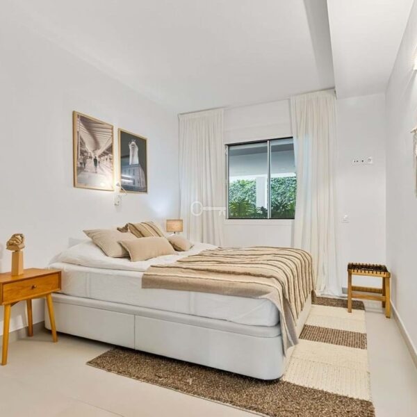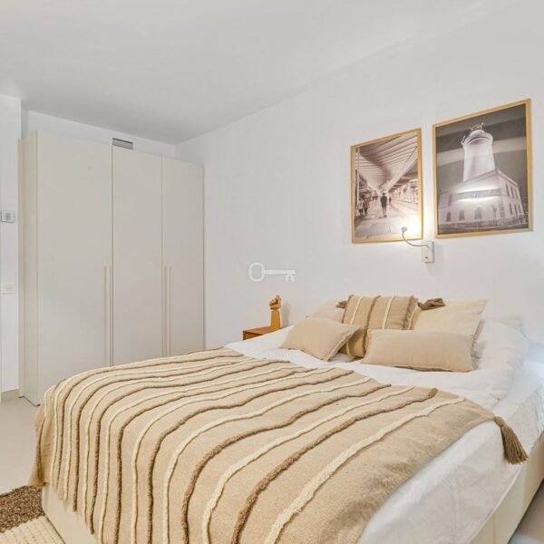 Less than a 10-minute stroll from the beach, this beautiful three bedroom, two bathroom apartment offers a modern open plan layout. The interior is carefully styled with a calm and elegant feel, creating a home that is both comfortable and welcoming. One of the bedrooms features an en suite bathroom and direct access to the terrace, allowing you to step outside and enjoy the outdoor space from the privacy of your own room.