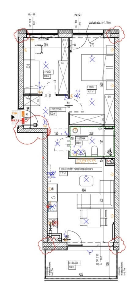 * Living room with kitchenette (21.77 m²),