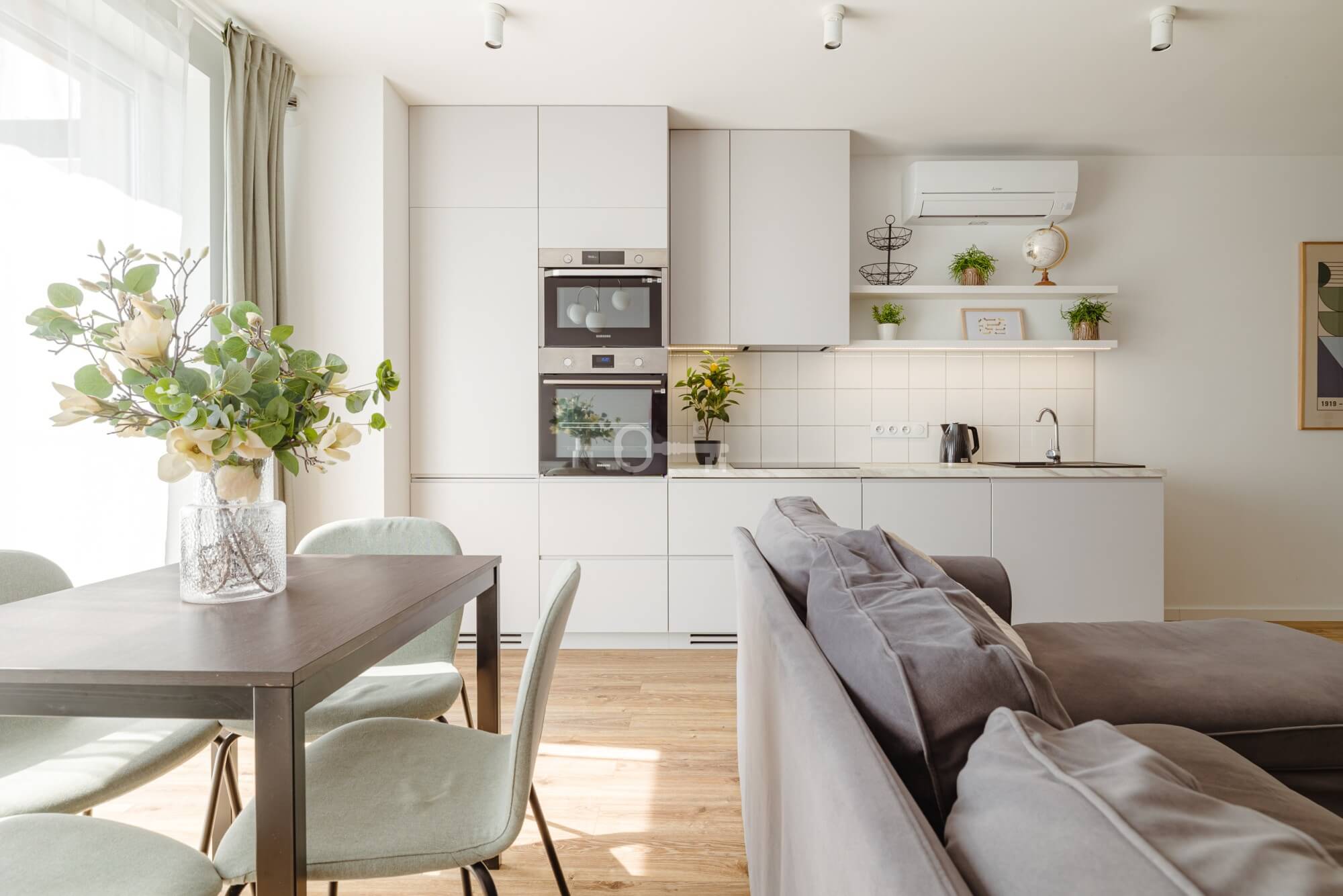 The flat is finished to a very high standard, is ergonomic and highly functional. Built-in wardrobes in every room provide convenient storage and are an attractive feature of the interior. The flat has air conditioning.