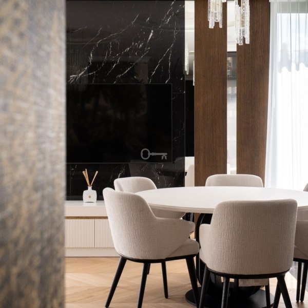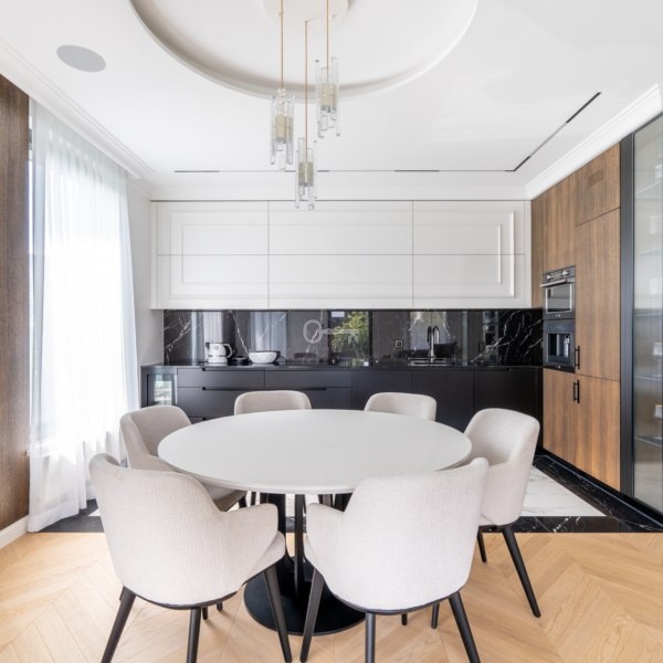 The development of the estate is shaped in the rhythm of the flowing river, providing each resident with a unique view. Large glazing and enlarged windows bring sunshine into the interiors and allow the residents to admire the landscape.