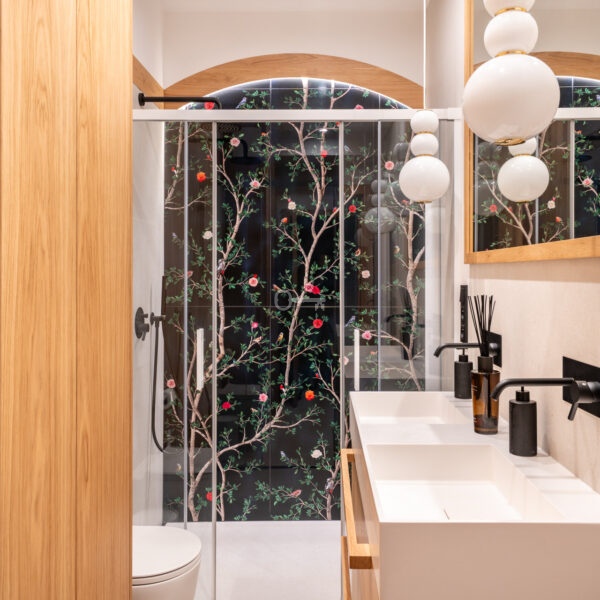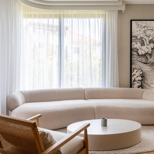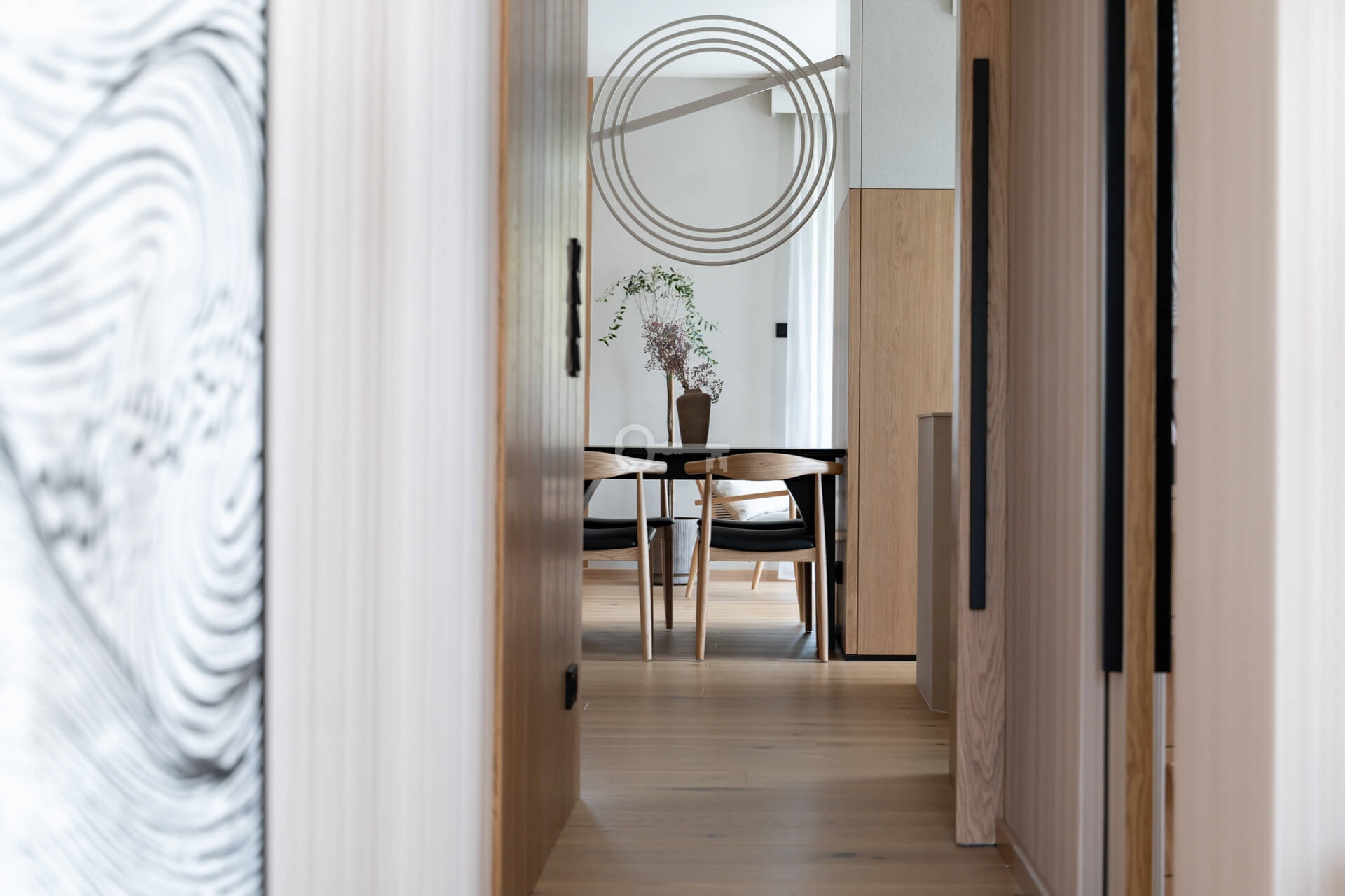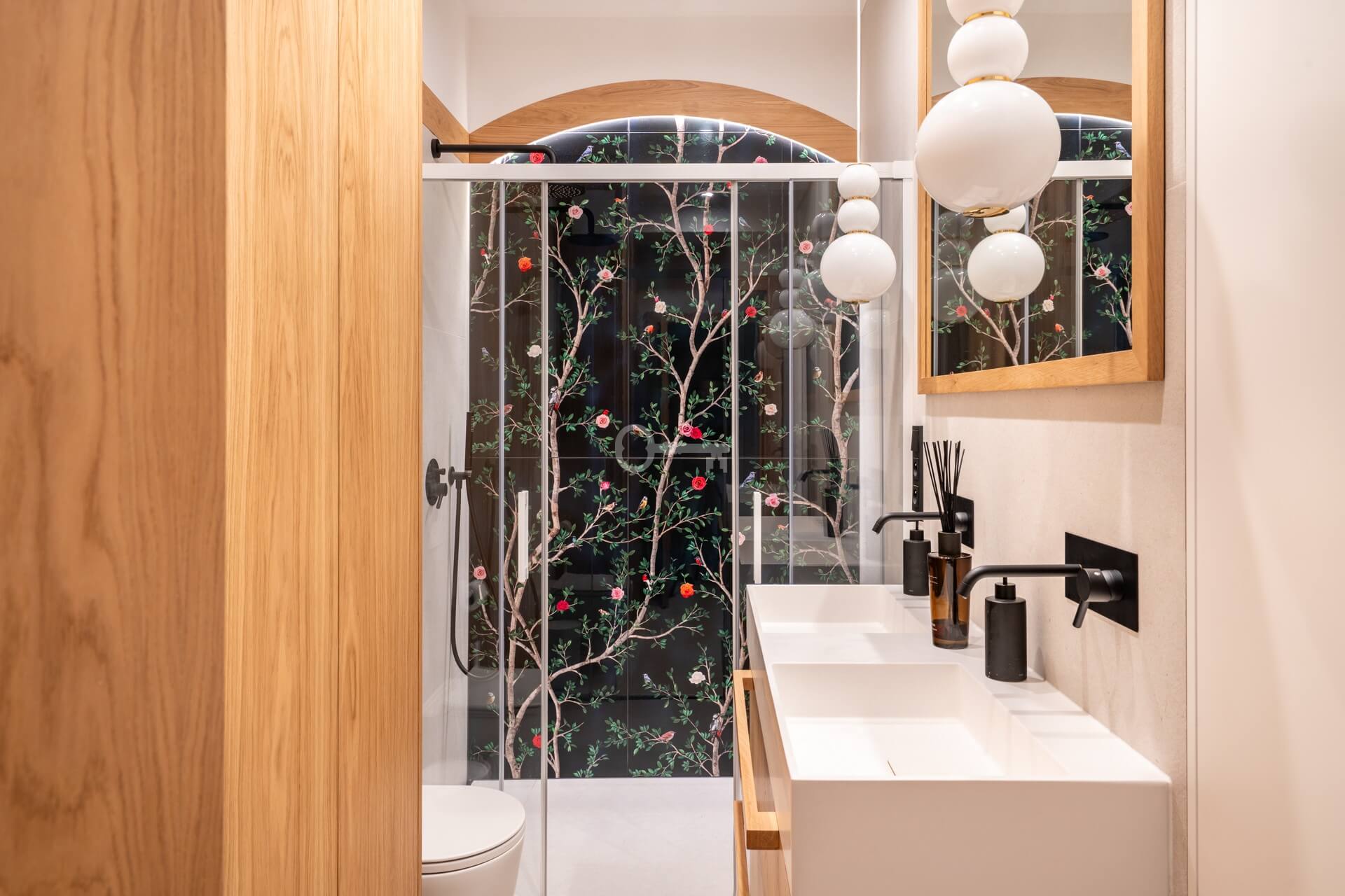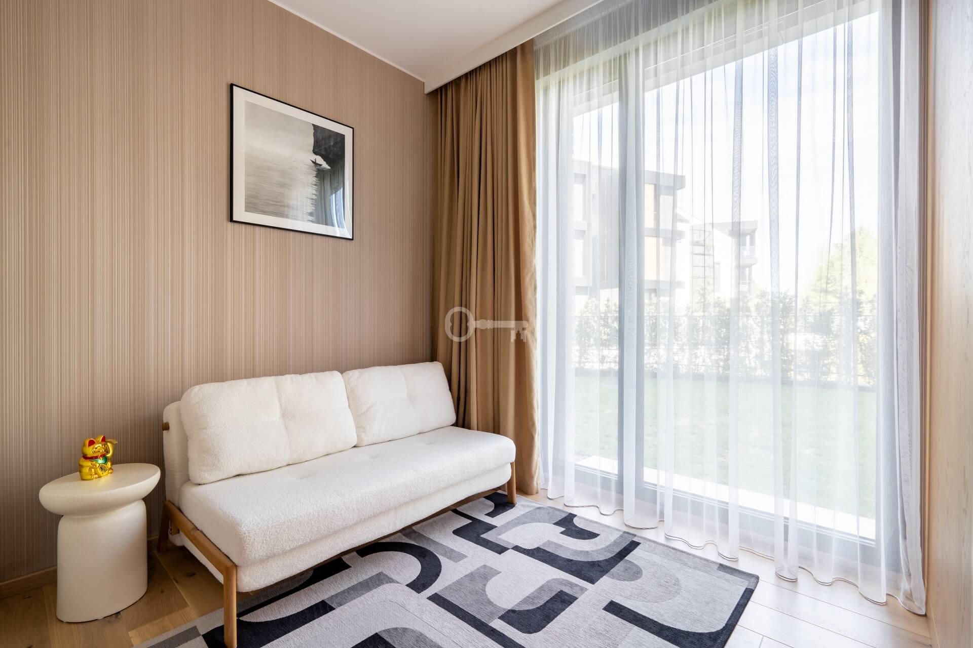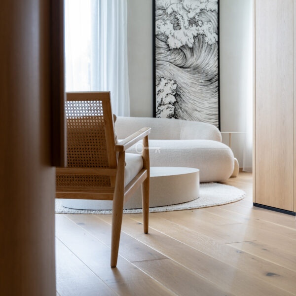 The apartment is finished with the highest quality materials in the Japandi style. Natural wood, stone, and linen dominate the design. Walls in subdued tones highlight the minimalist character of the interior. LED lighting creates a warm and cozy atmosphere. Furniture was custom-made to fit the space perfectly.